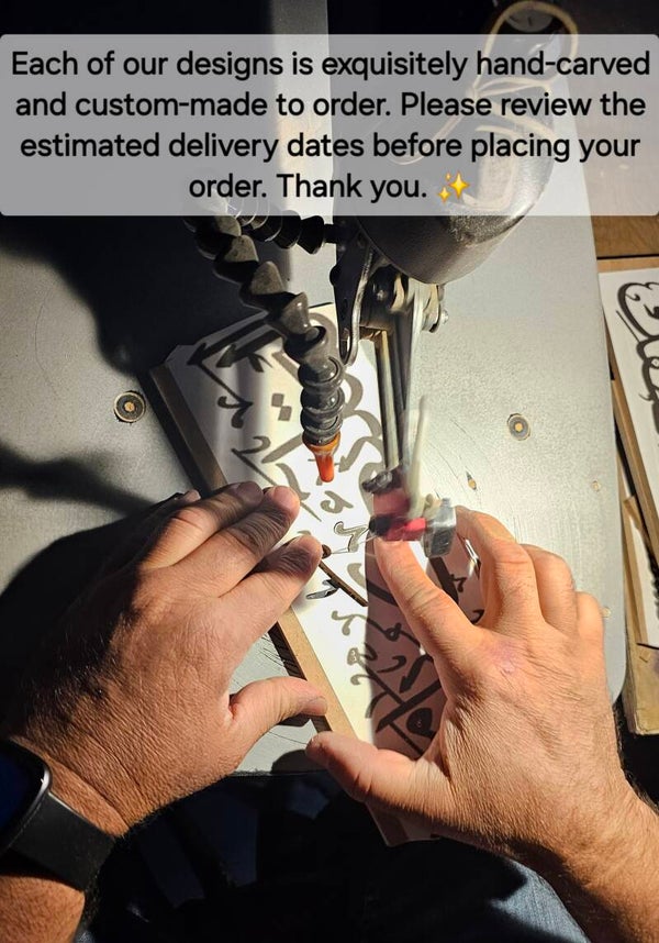 DESIGN Hand-carved 3D Arabic & English calligraphy